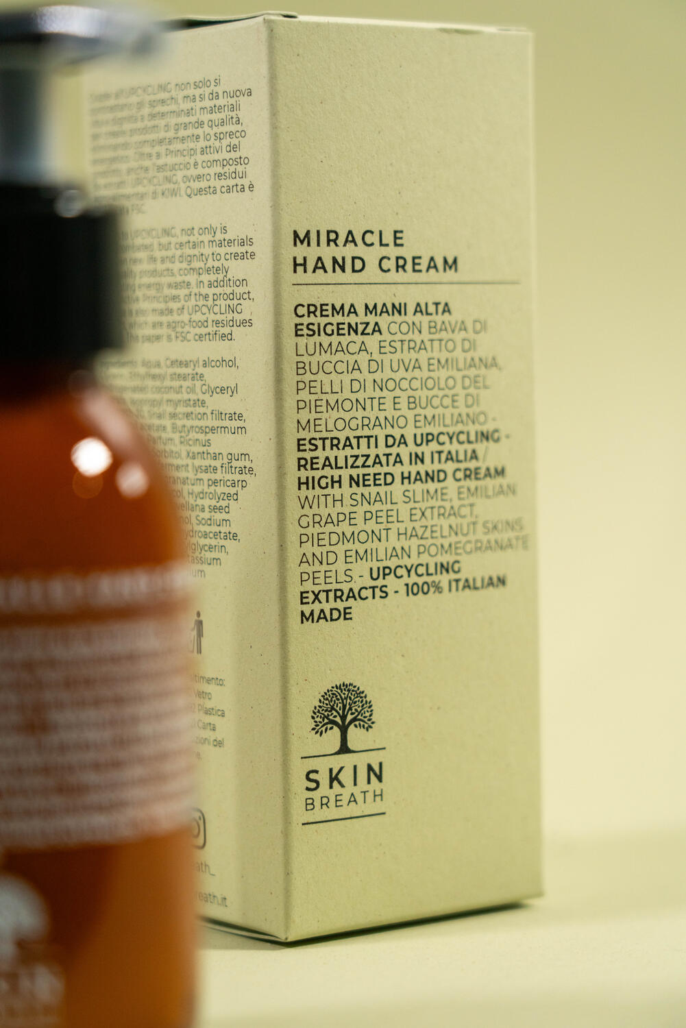 Crema mani e unghie alla bava di lumaca, ideale per idratare, nutrire e rigenerare la pelle secca o screpolata. La sua formula naturale, ricca di allantoina, collagene, elastina e vitamine, favorisce la rigenerazione cutanea e rinforza le unghie fragili. Lascia le mani morbide, vellutate e protette dagli agenti esterni. Si assorbe rapidamente senza ungere. Dermatologicamente testata, senza parabeni né siliconi, contiene anche estratto di buccia di uva emiliana, pelli di nocciolo del Piemonte e bucce di melograno emiliano.